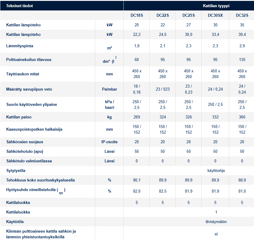 | 7. | Turvatermostaatti | 33. | Savukaasujarru (DC22SX, DC30SX, DC40SX, DC50S, DC70S) |