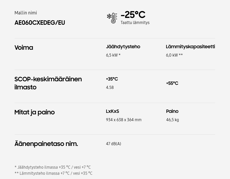 R410A-freonilla toimivat lämpöpumput. Laite sopii täydellisesti myös erittäin ankariin ulkolämpötiloihin – se tuottaa