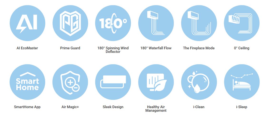 Этот современный кондиционер для помещений сочетает в себе интеллектуальные технологии с впечатляющим комфортом и элегантным, ненавязчивым дизайном.